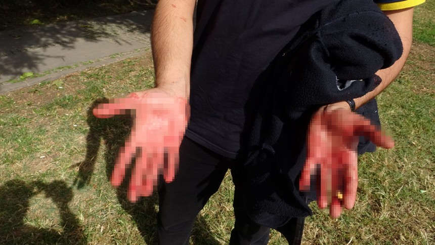 O sırada scooter ile ilerlemekte olan Ali Haydar Ö.'ye bıçakla saldıran şahıs ile Ali Haydar Ö. arasında kısa süreli bir boğuşma yaşandı. Boğuşma sırasında kimliği belirsiz şahsın bıçak darbeleri ile bir anda yere yığılan Ali Haydar Ö.'nün yardımına çevredeki vatandaşlar koştu. Saldırgan şahıs, elindeki bıçağı parkın çimlerine sildikten sonra hızla olay yerinden uzaklaştı.