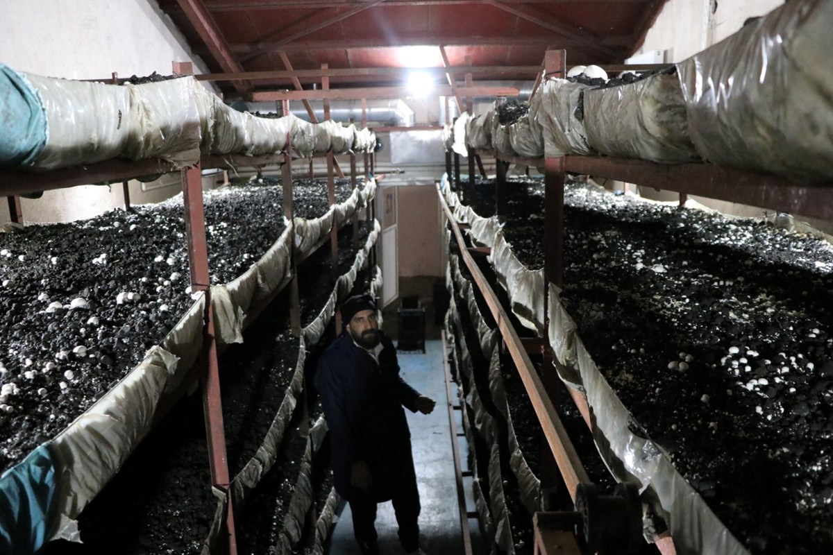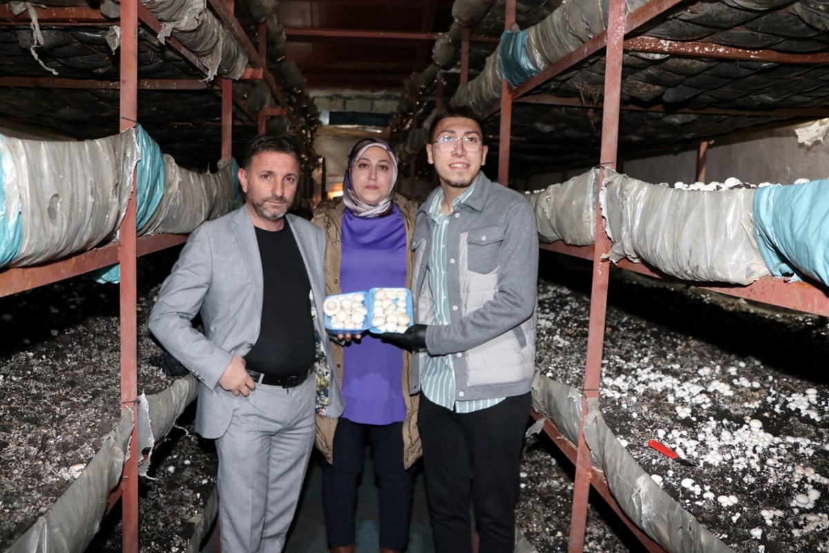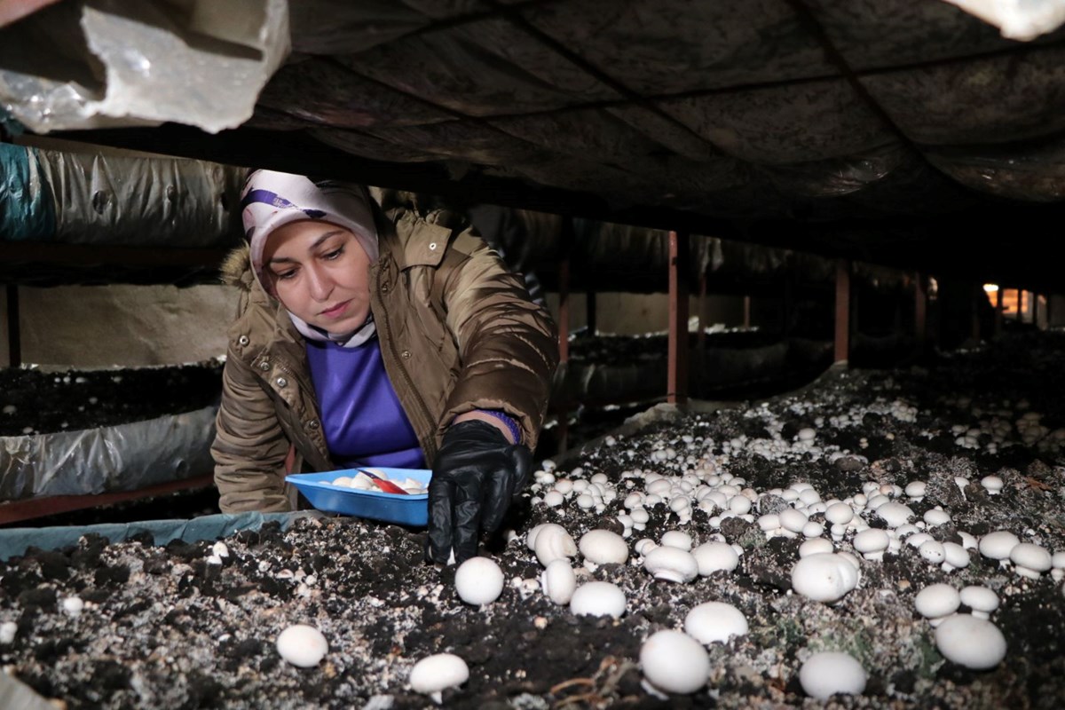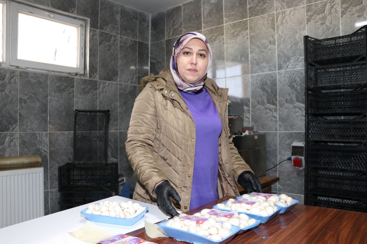 Erzurum'un Pasinler ilçesinde devlet desteğiyle tesis kuran 3 çocuk annesi Nurcan Aktaş, istihdam ettiği 10 kişi ile mantar üretiyor.