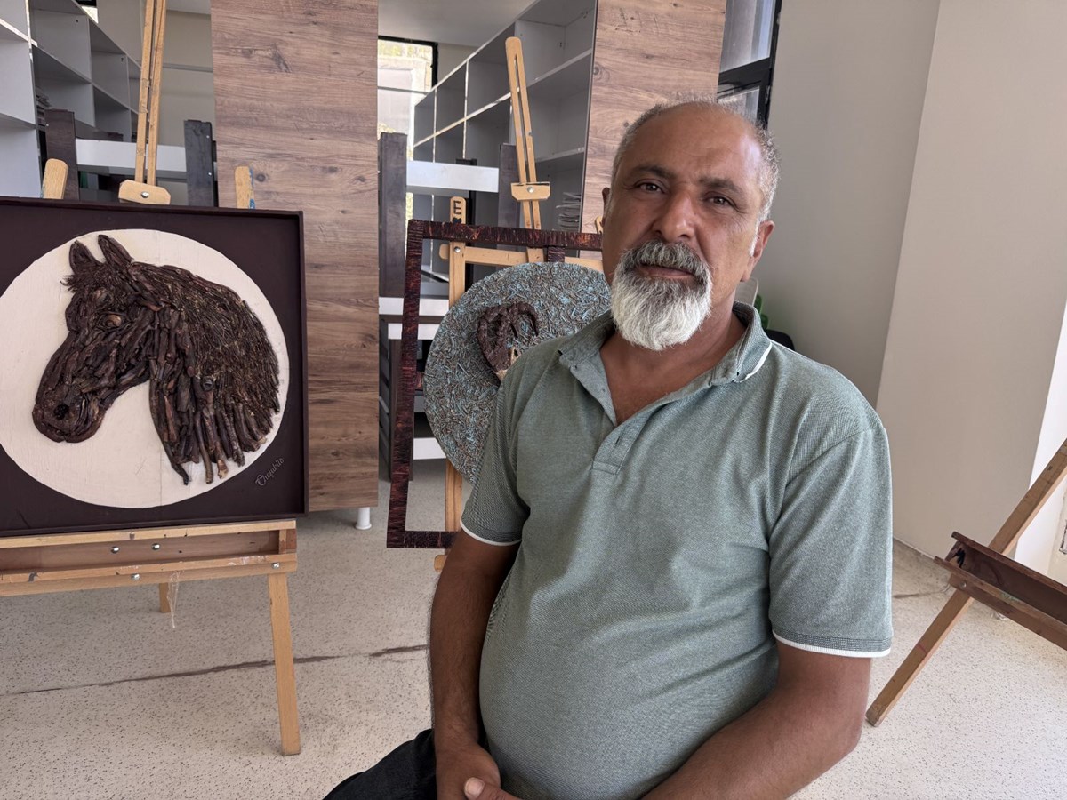 Silopi'de yaşayan Sidar, doğadan topladığı taş, toprak, yaprak ve ağaç dalları gibi malzemelerden doğa ve hayvan figürlü kabartma resimler yapmaya başladı.