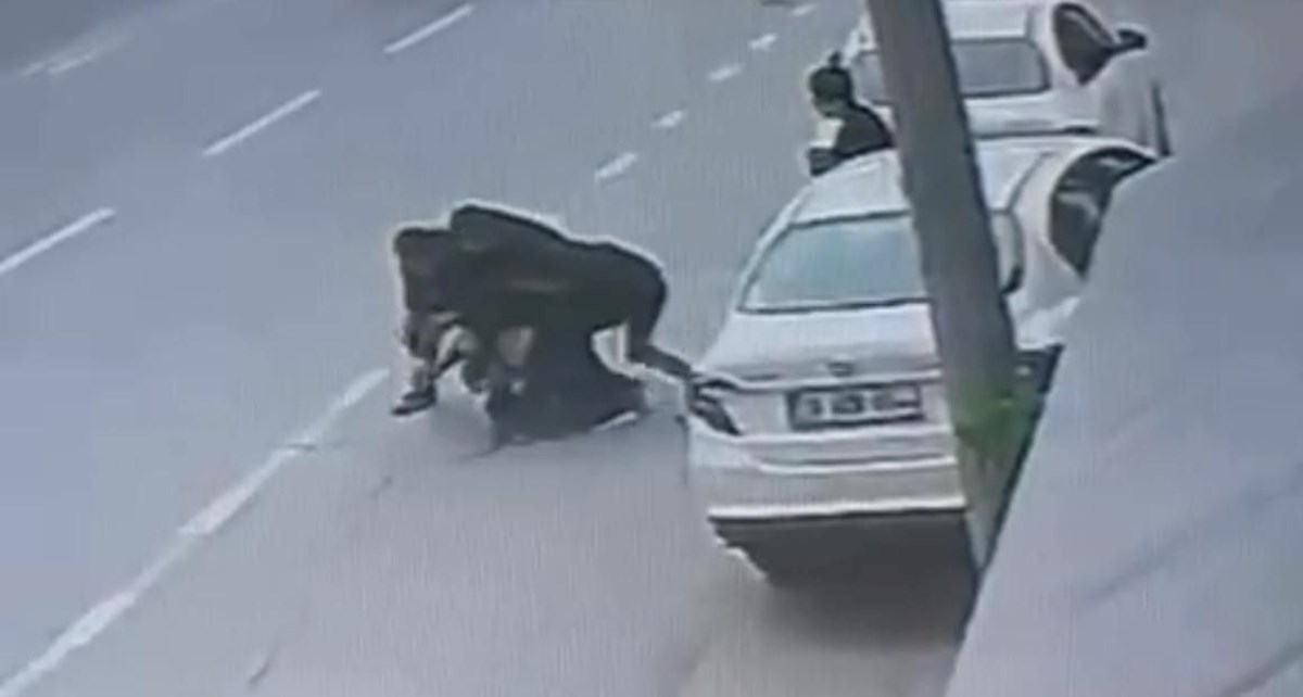 Bursa'da aracıyla drift atarken polise yakalanan sürücü, ortalığı birbirine kattı. Polis memuruna saldırıp silahını almaya çalışan sürücü gözaltına alındı.