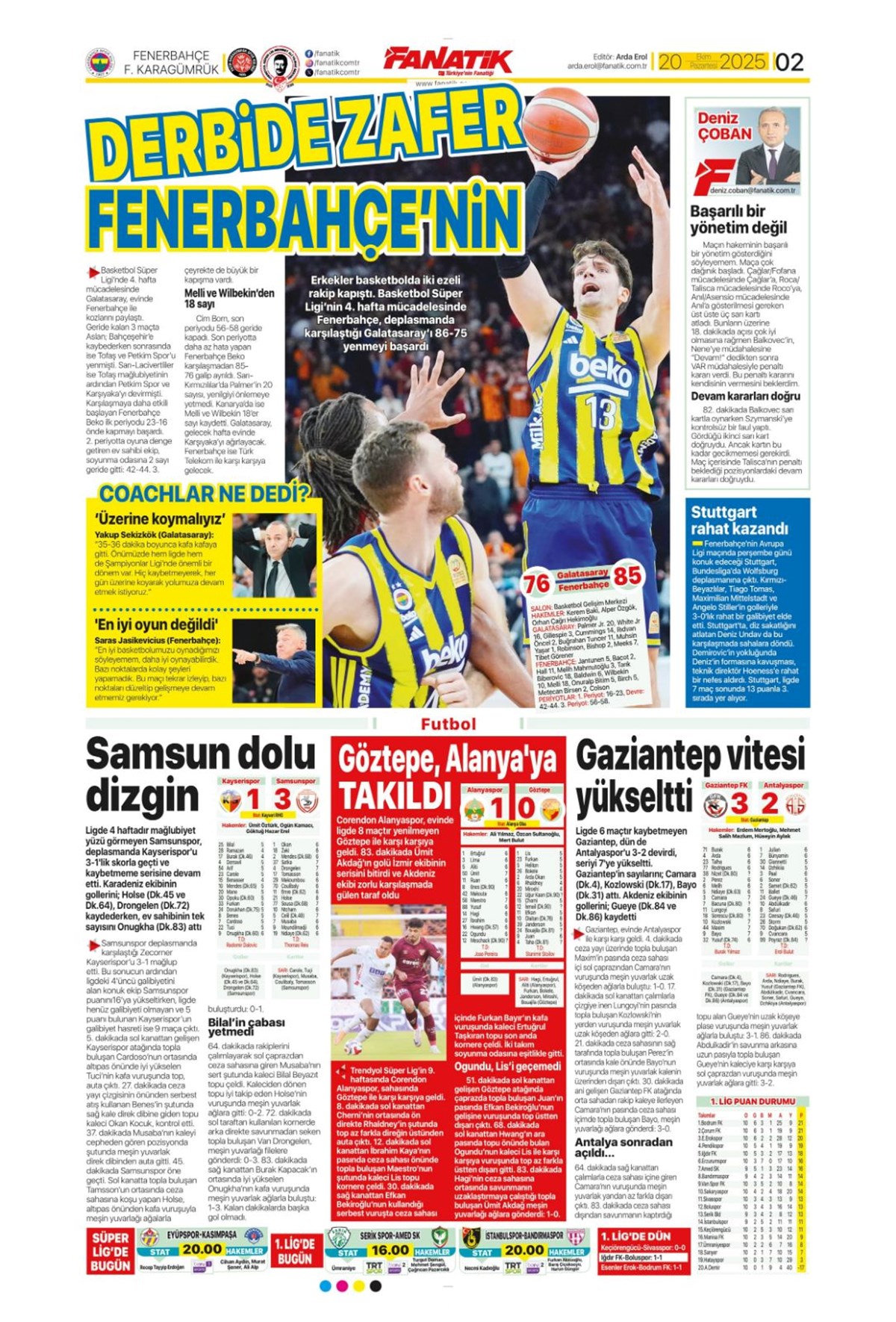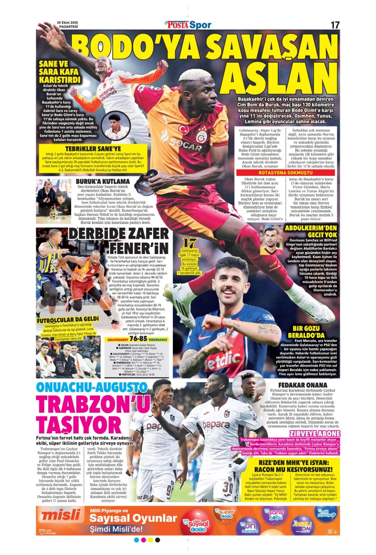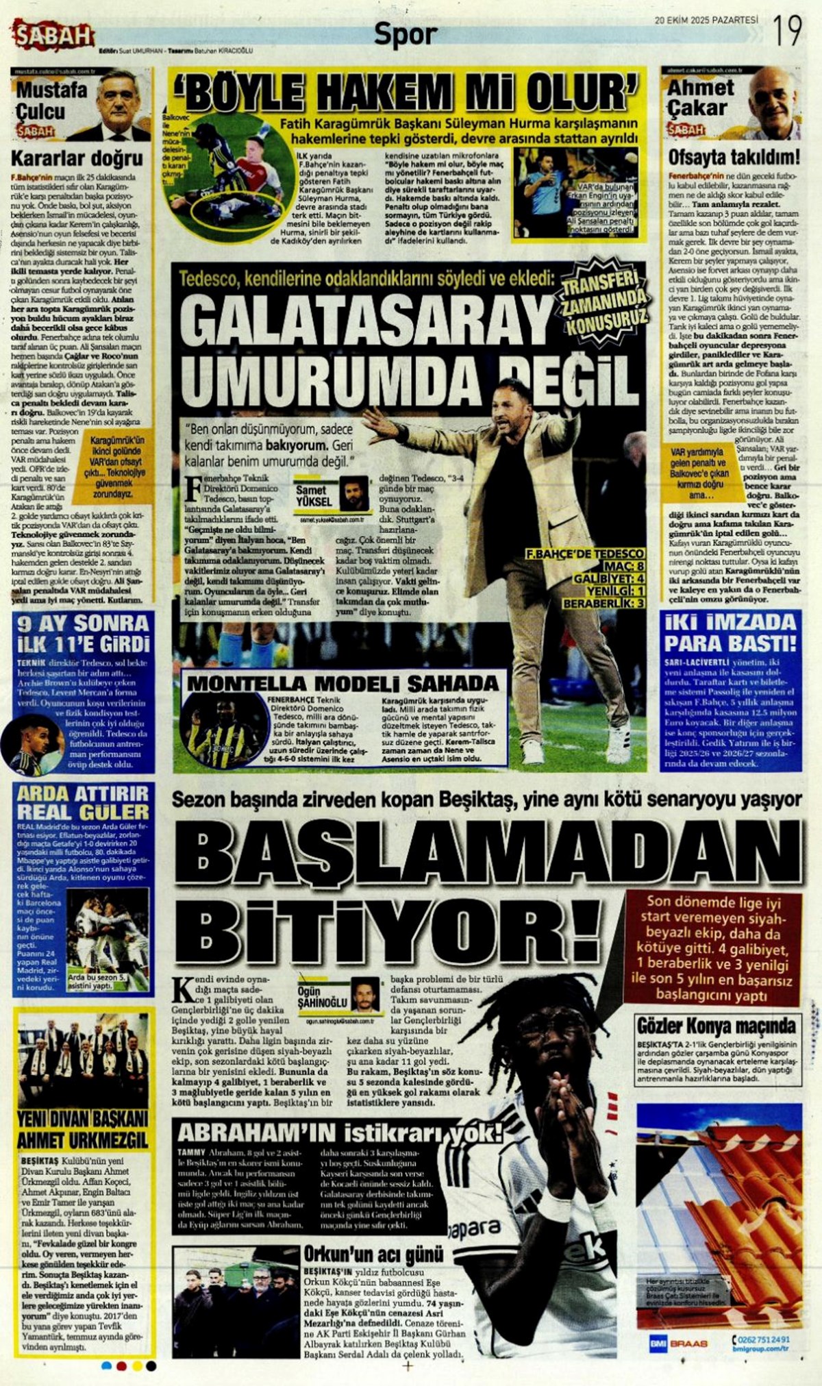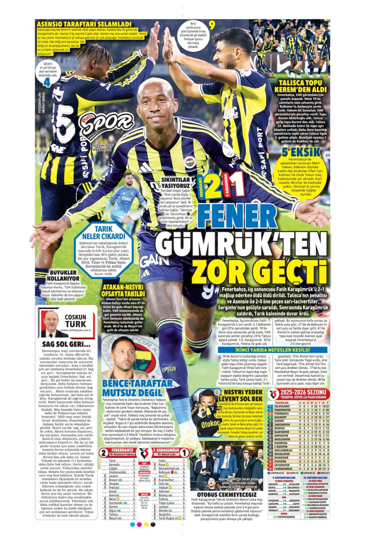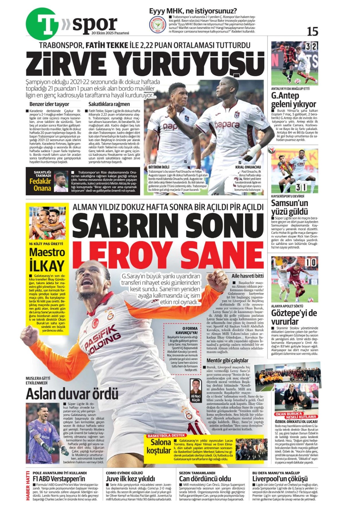 "El Turco'nun üçüncü harikası" (20 Ekim 2025 spor manşetleri)