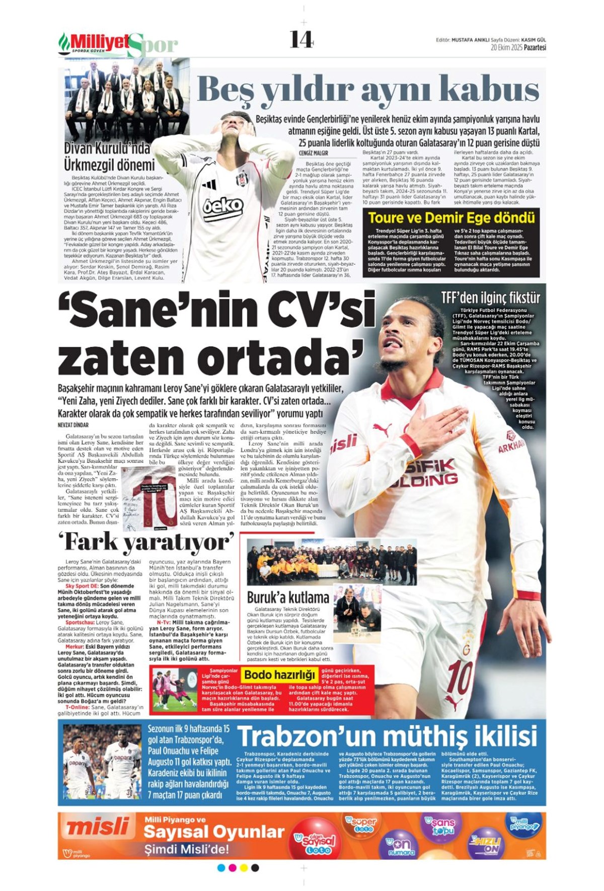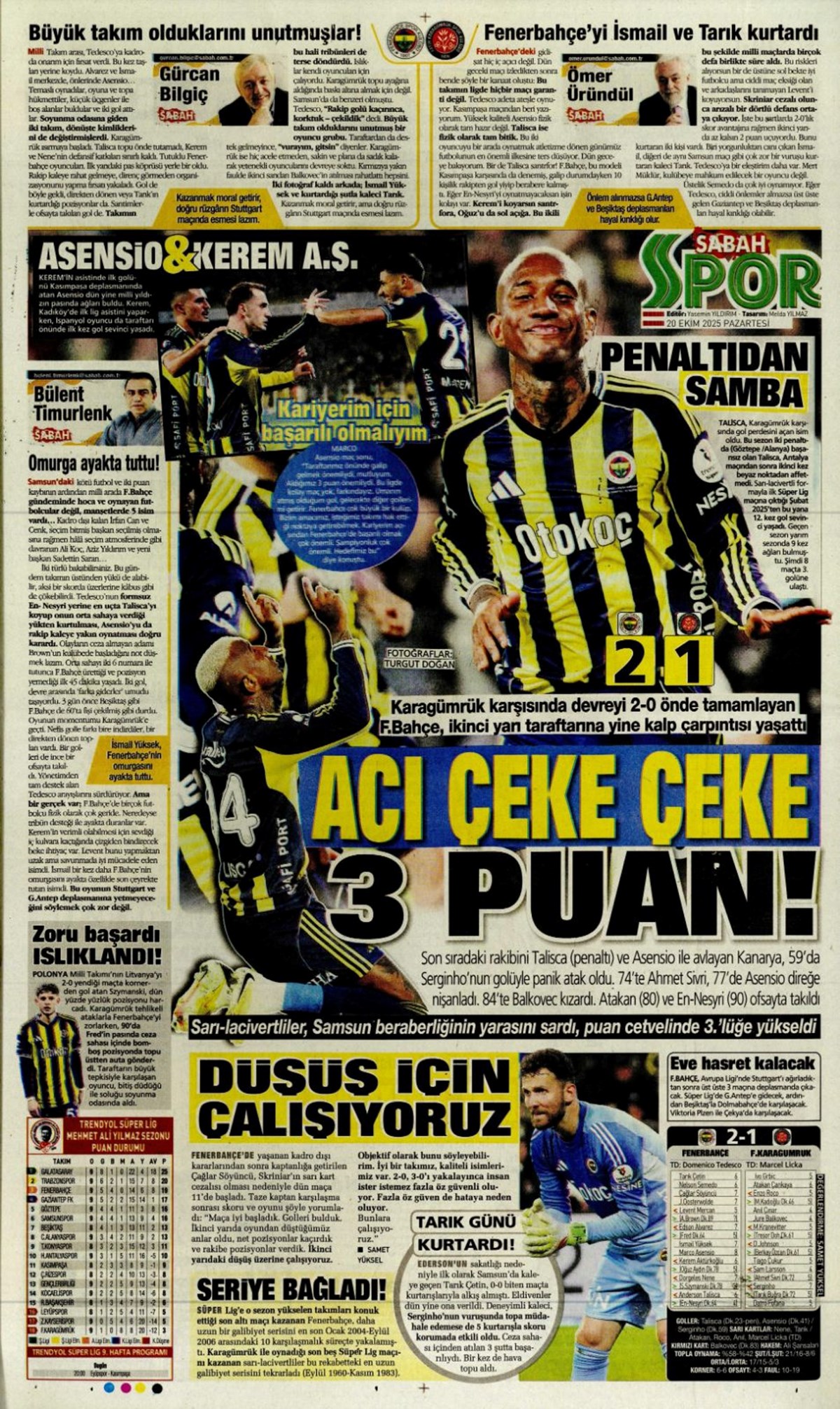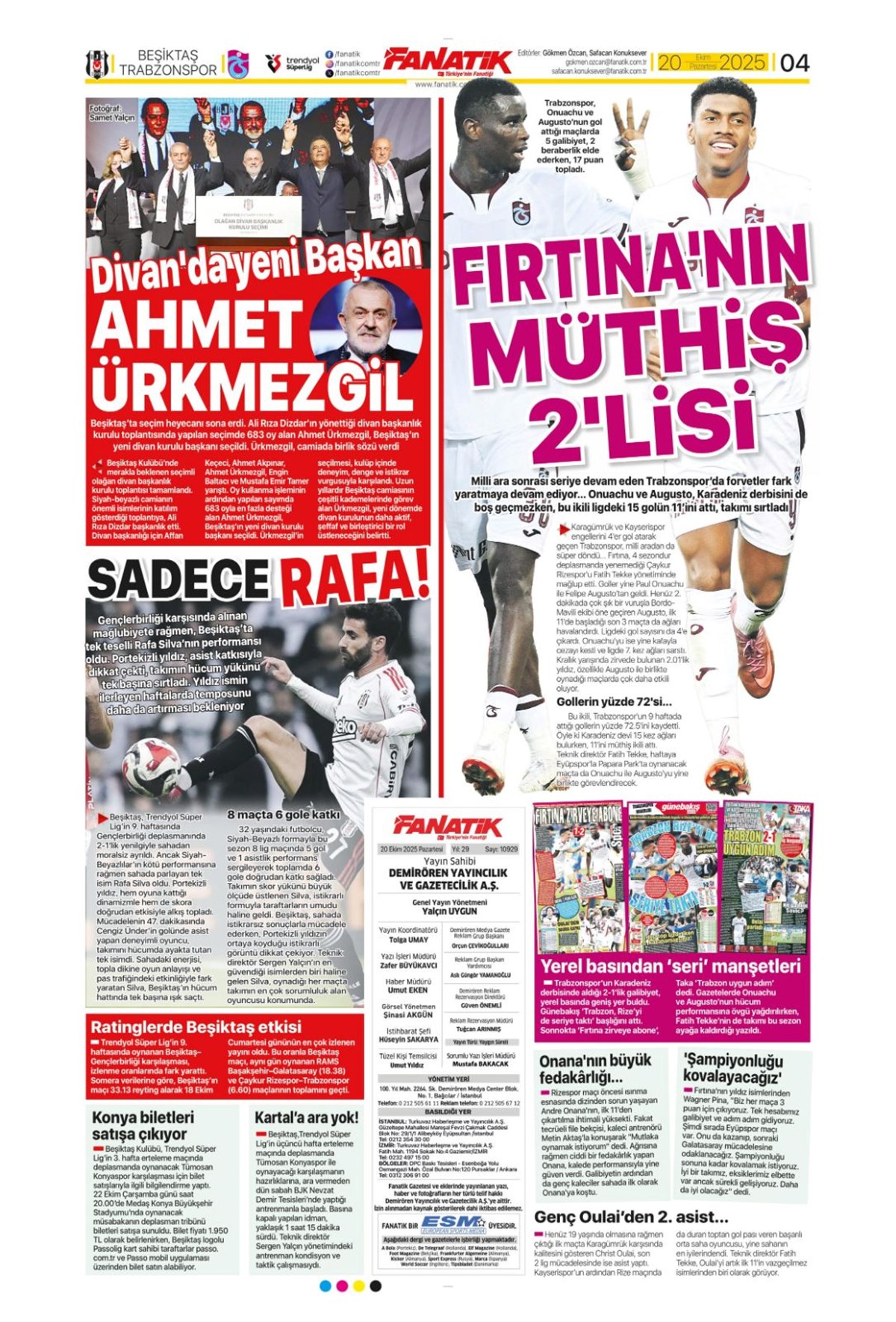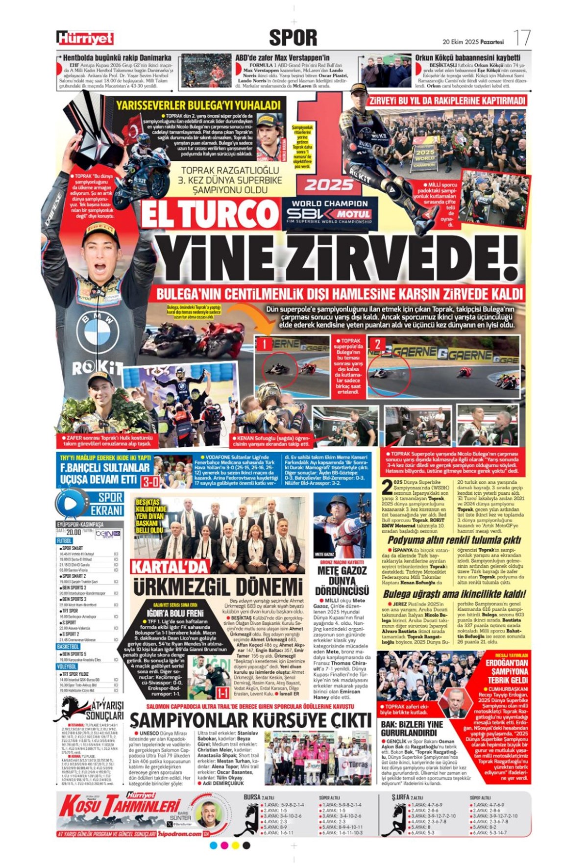 "El Turco'nun üçüncü harikası" (20 Ekim 2025 spor manşetleri)