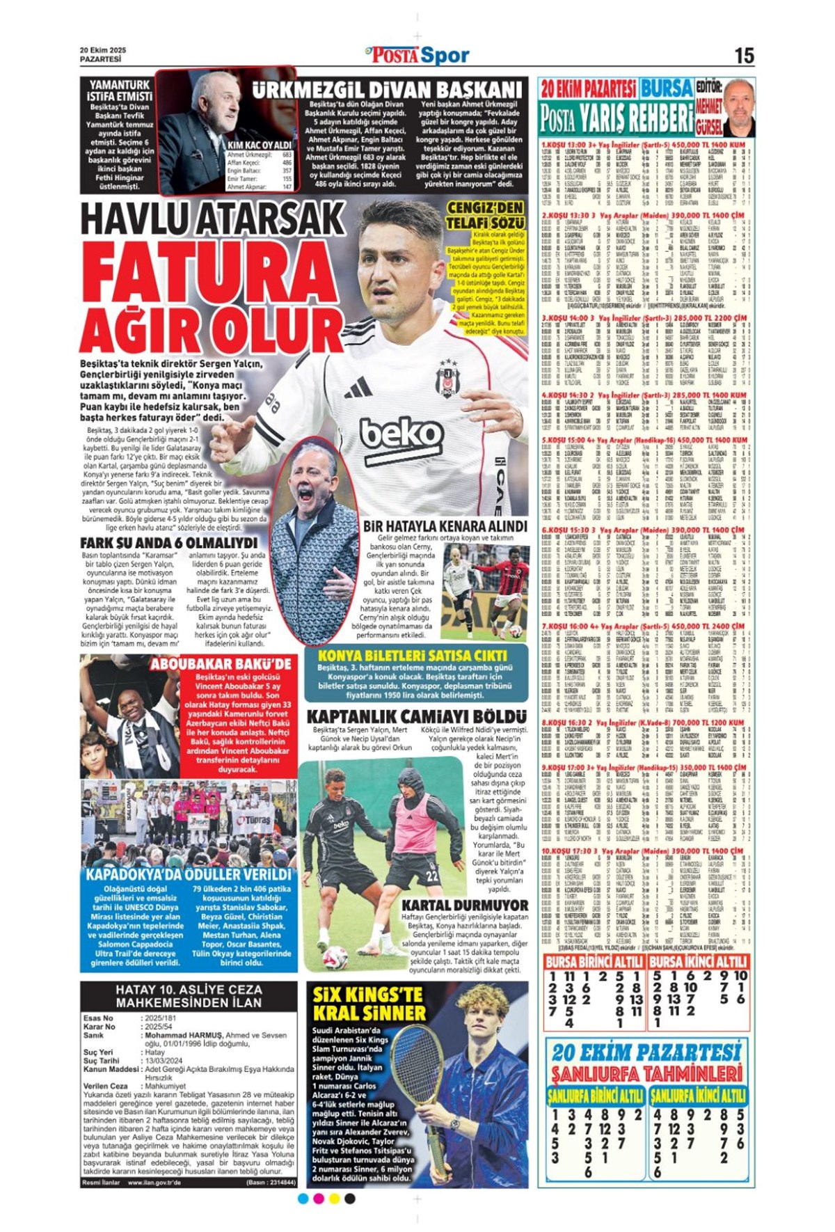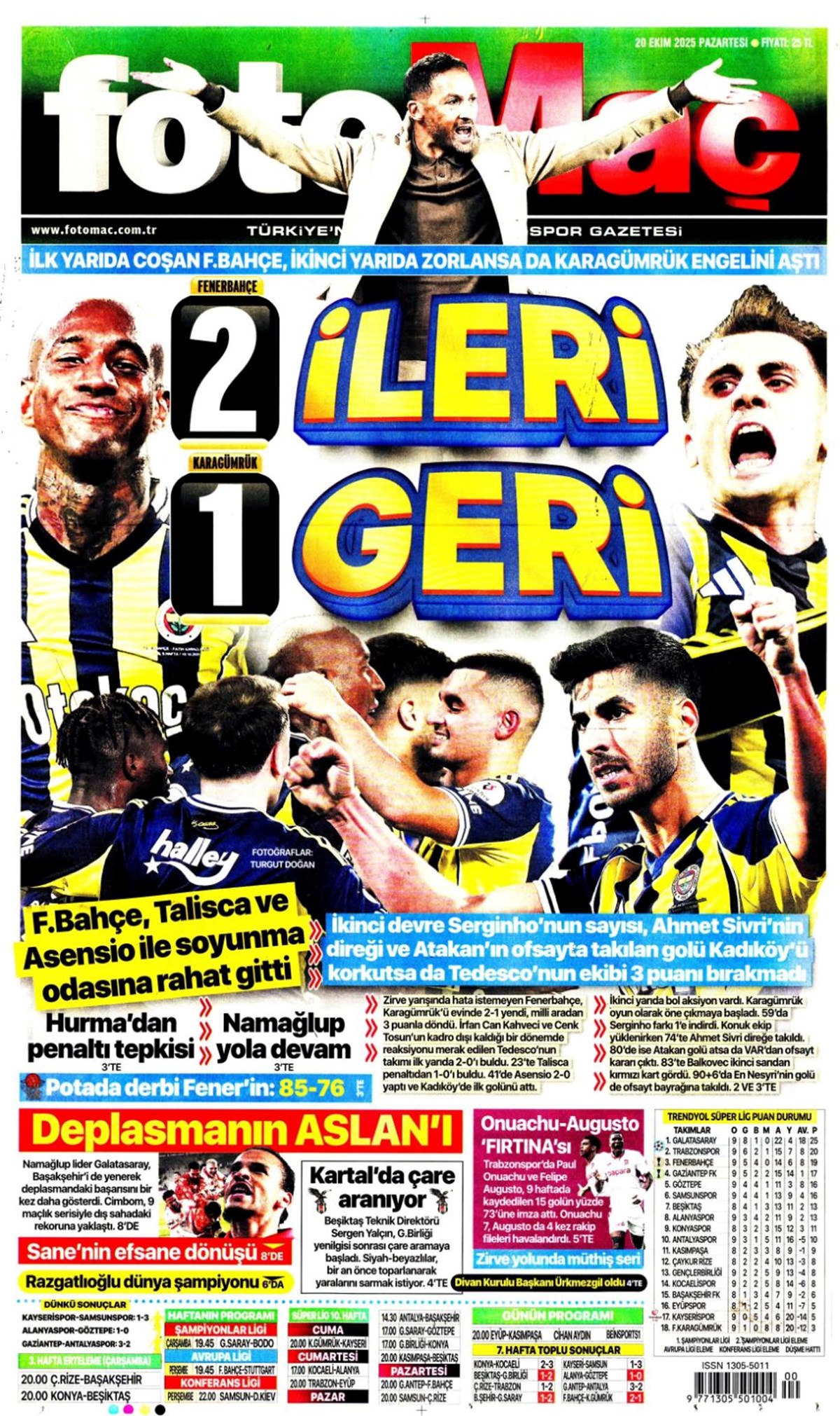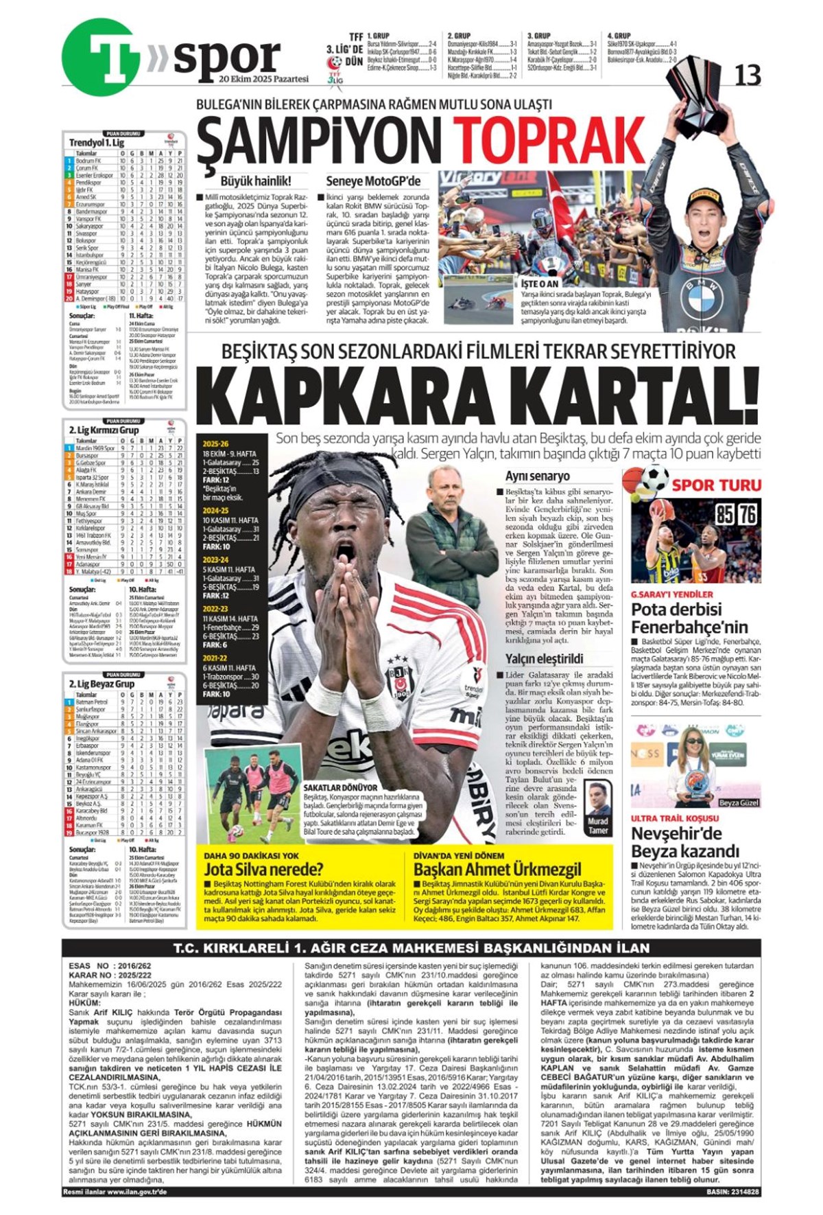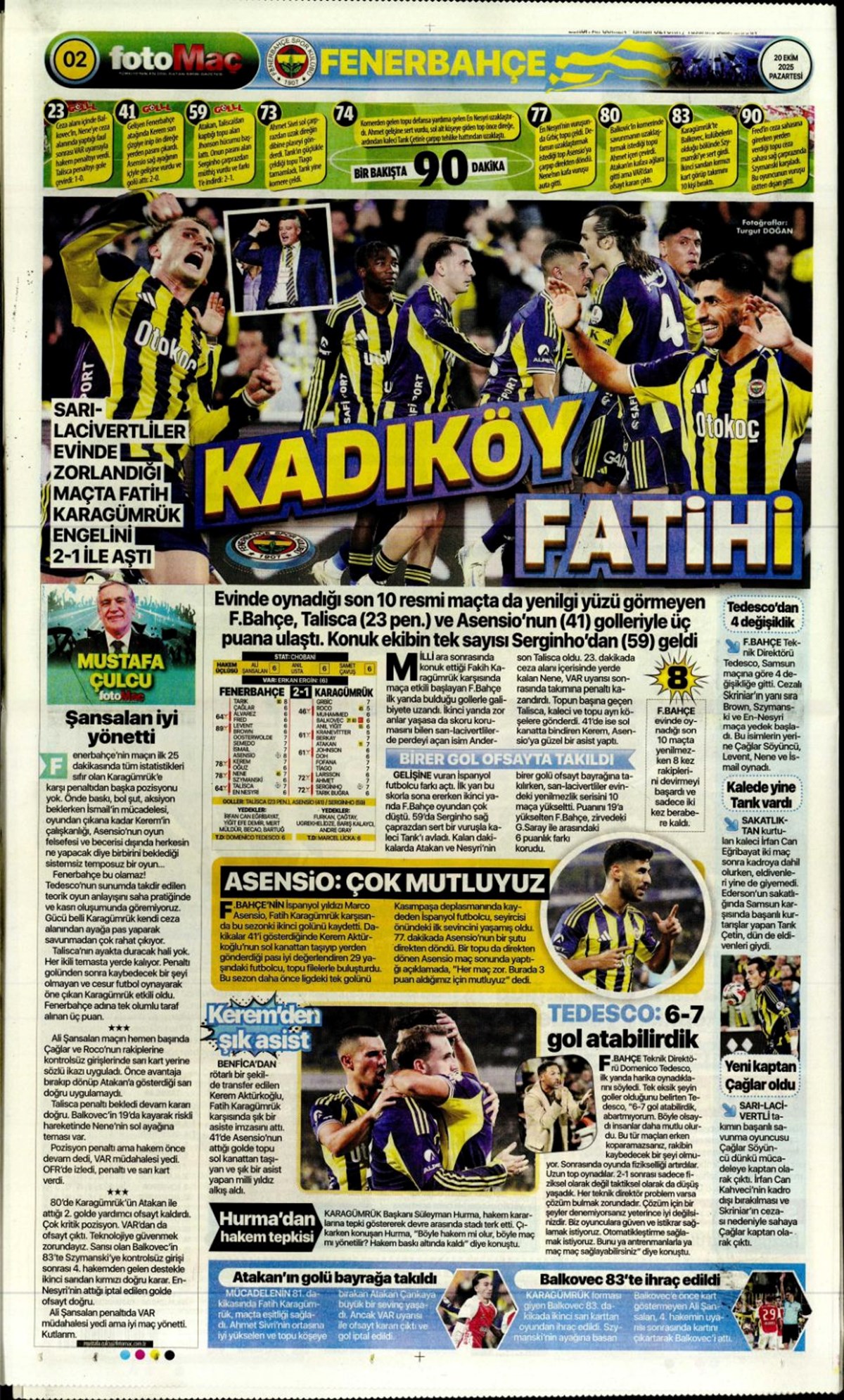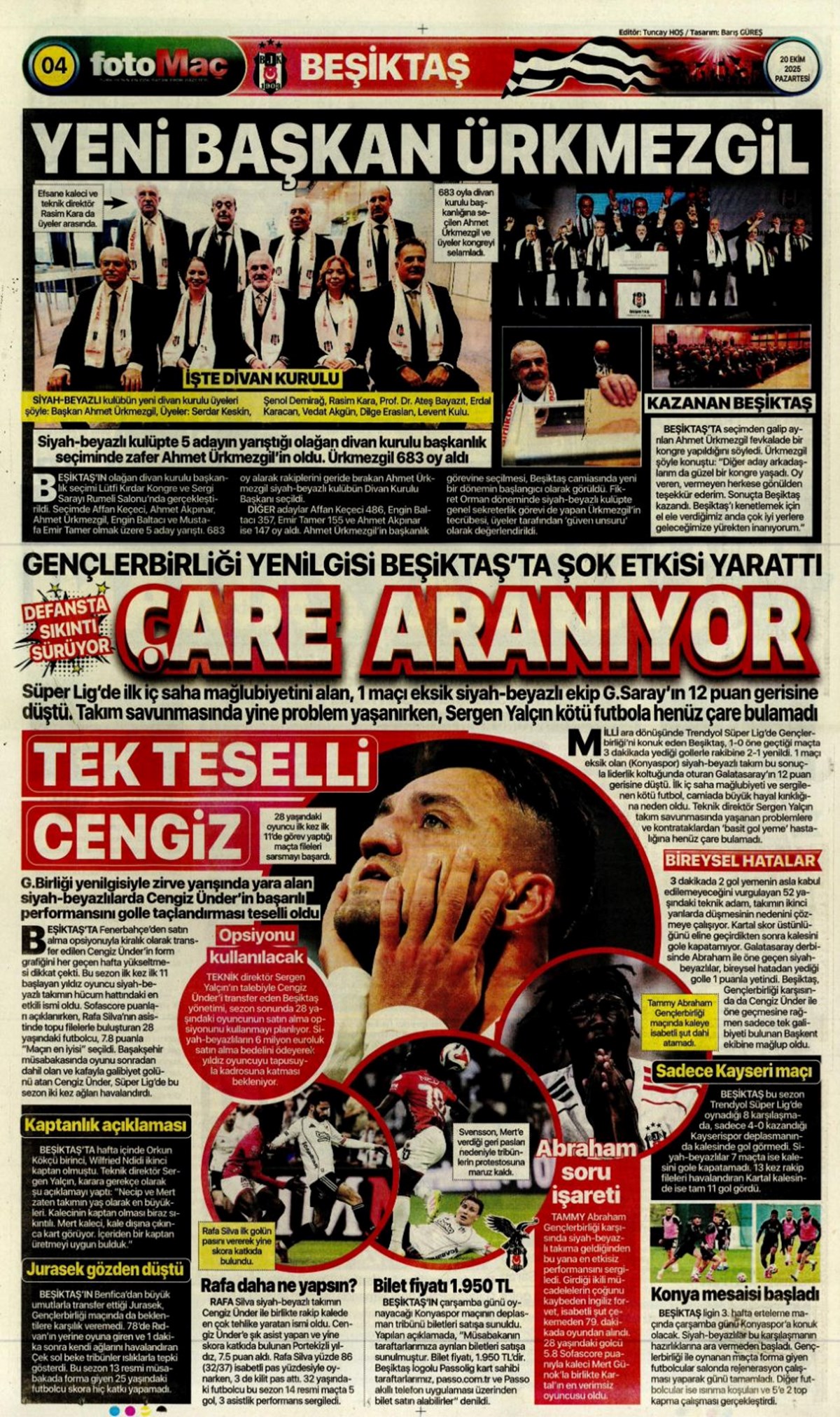 "El Turco'nun üçüncü harikası" (20 Ekim 2025 spor manşetleri)