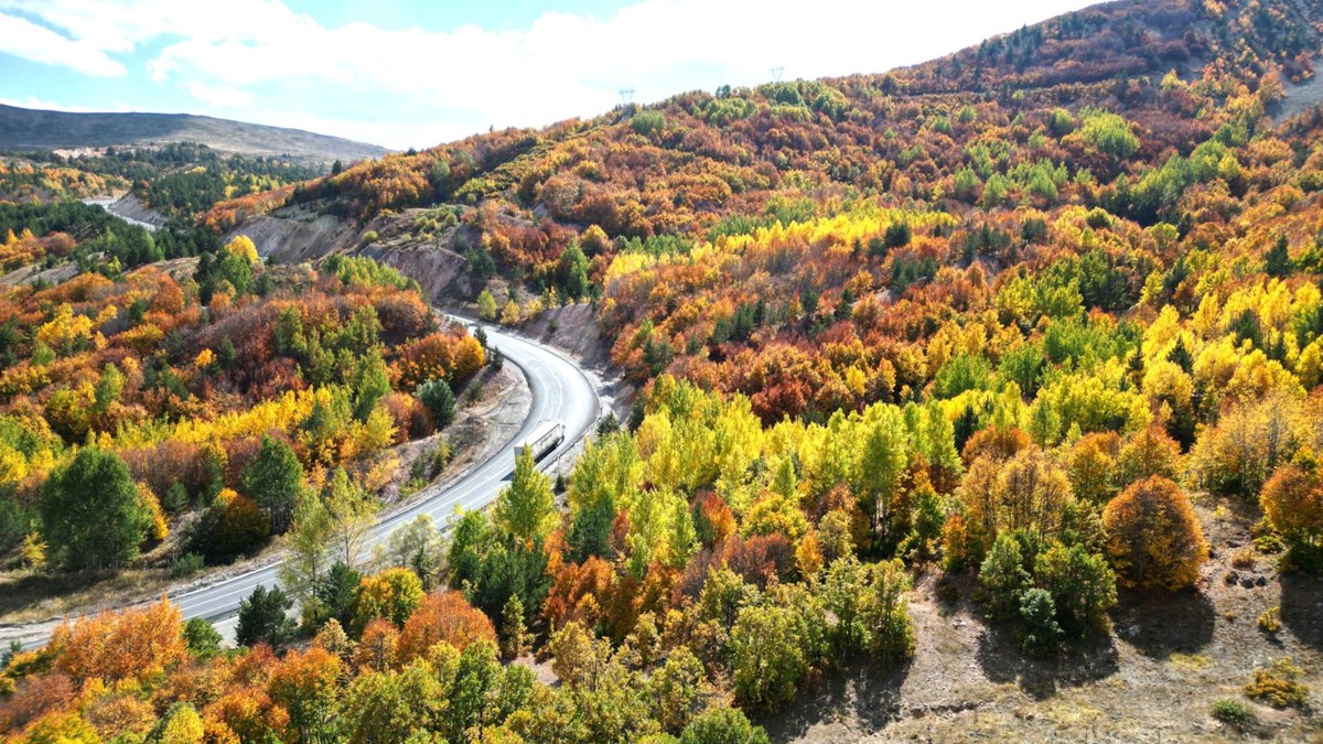 Sivas'ın Suşehri ve Zara ilçeleri arasında bulunan Geminbeli Geçidi, sonbahar mevsiminde oluşan rengarenk görüntüsü ile masalsı bir görsellik sunuyor.