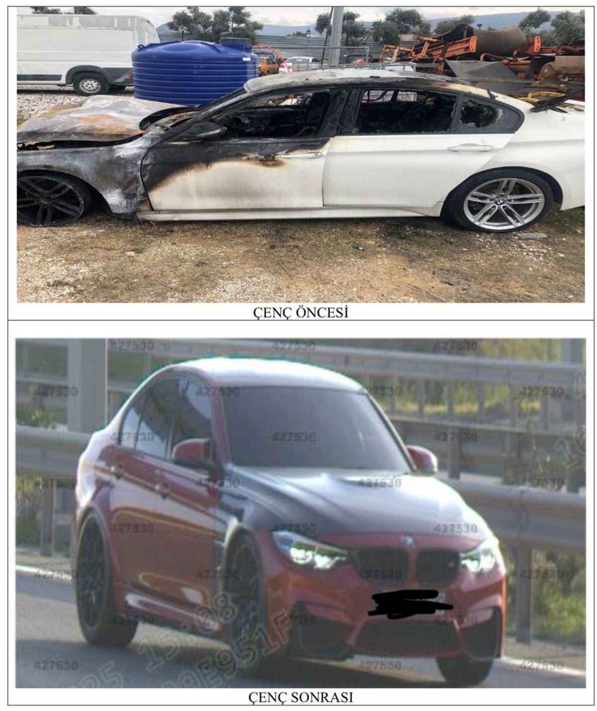 Suç örgütünün aynı yöntemi kazalı araçlar ile yangın sonucu kullanılamaz hale gelen araçlara da uyguladığı belirlendi.