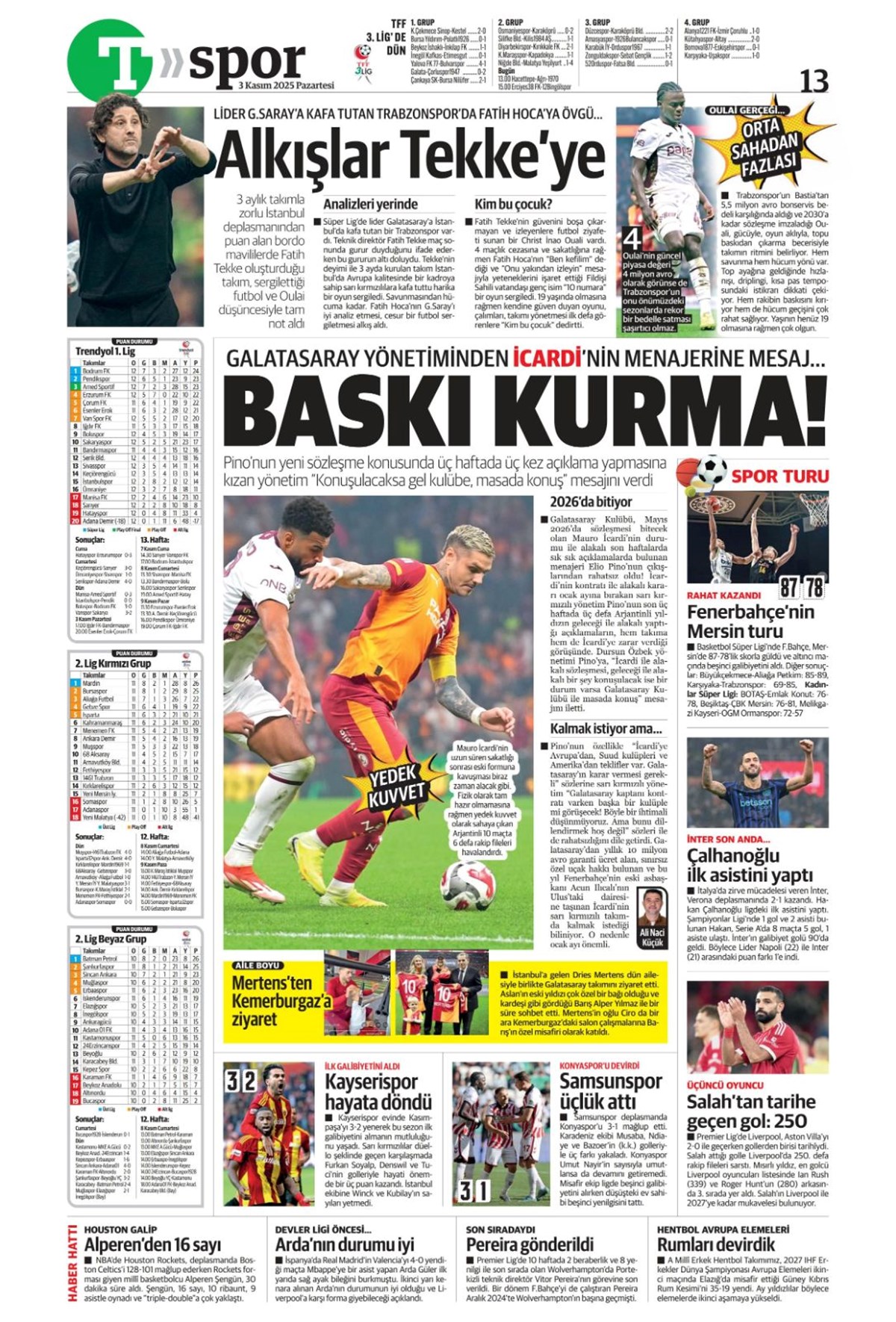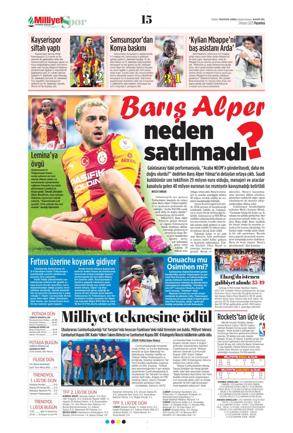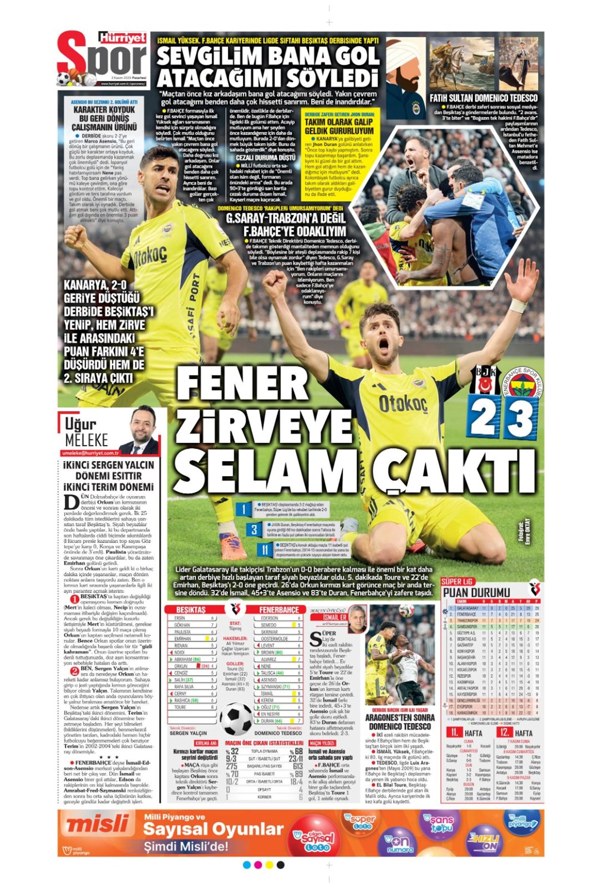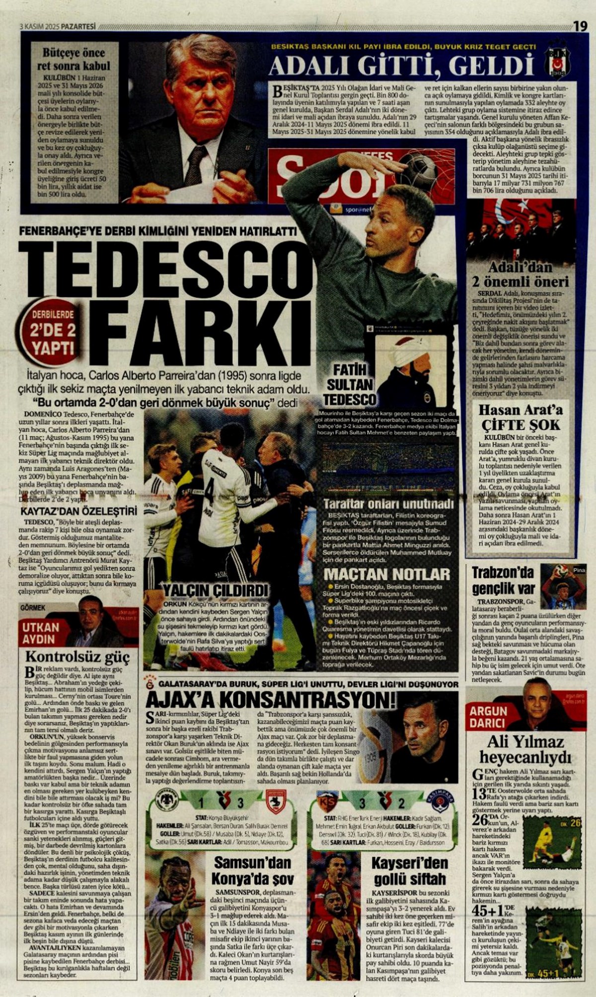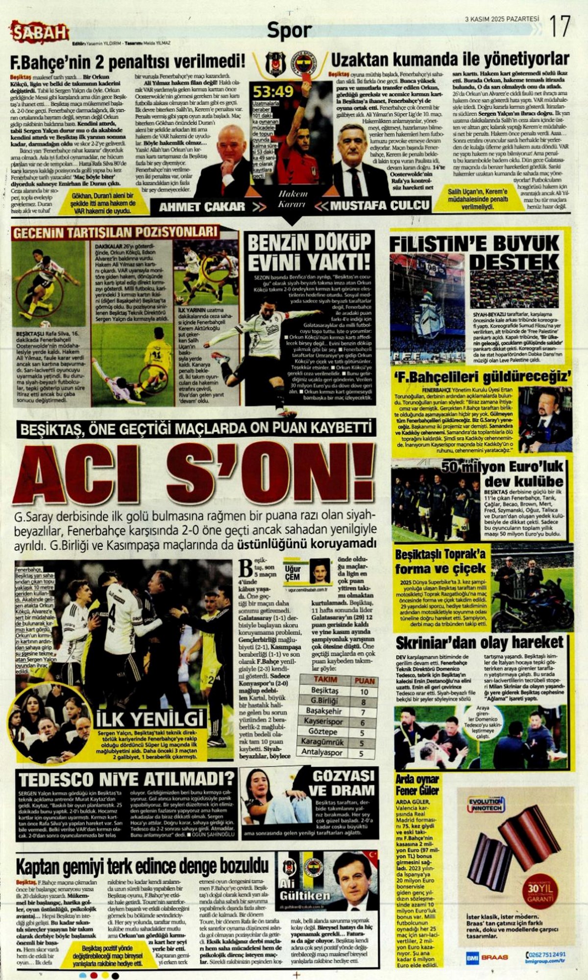 "Kırmızı derbi" (3 Kasım 2025 spor manşetleri)
