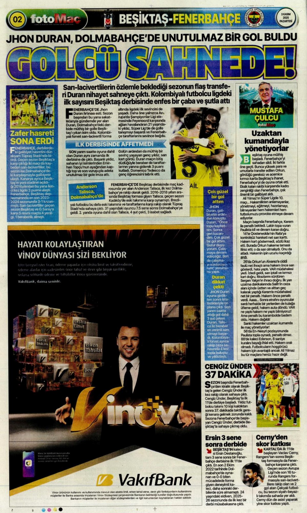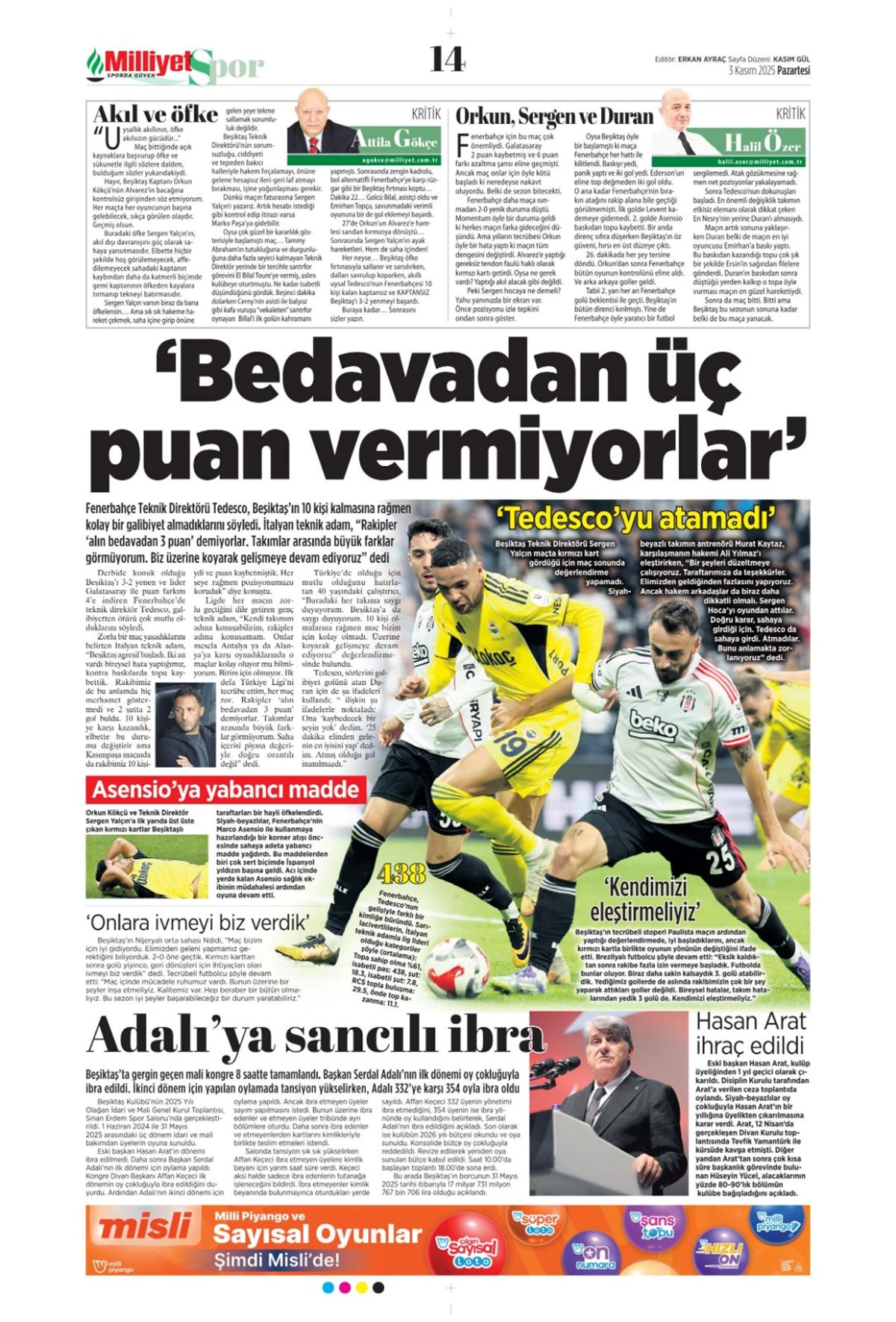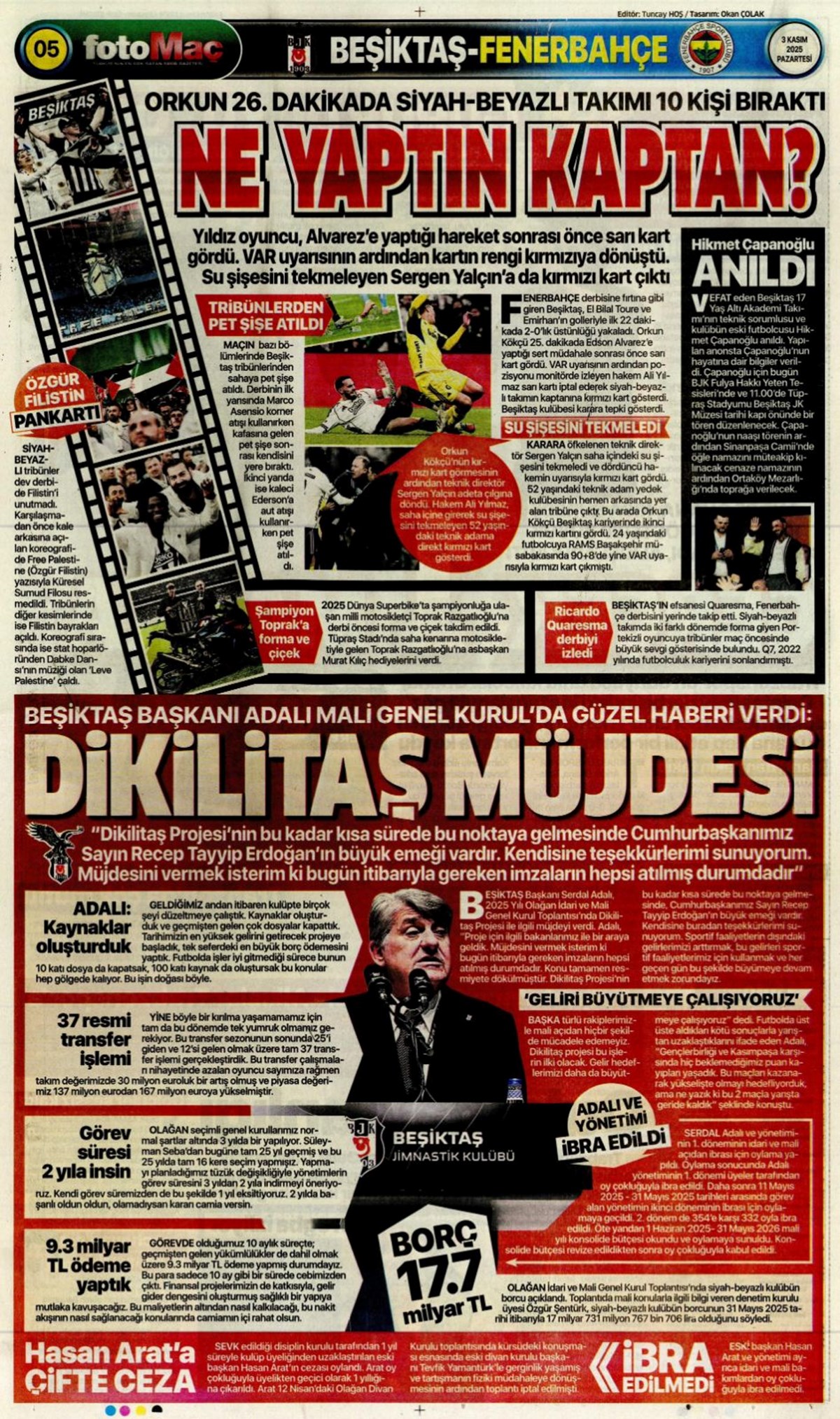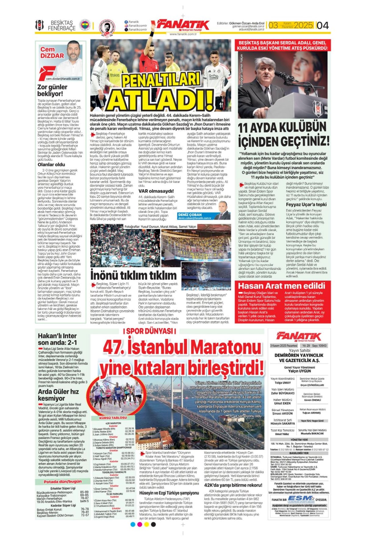 "Kırmızı derbi" (3 Kasım 2025 spor manşetleri)