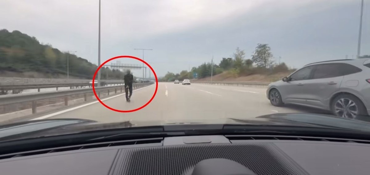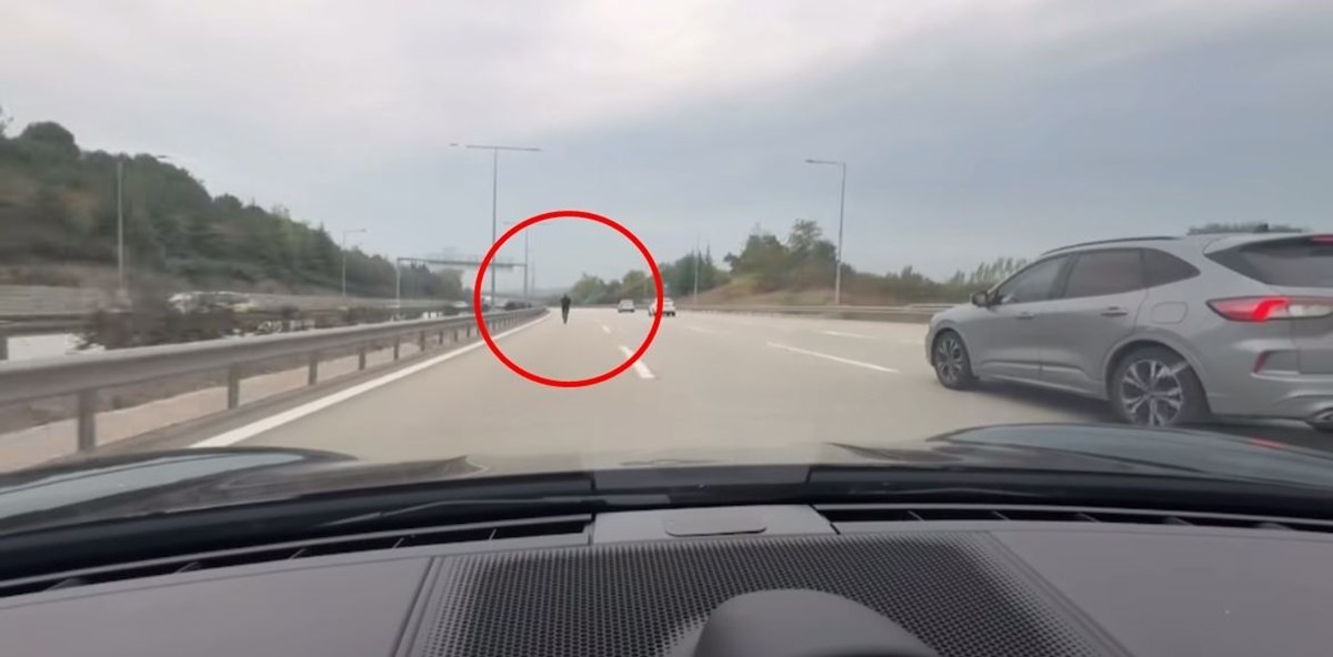 Bursa'da otoyolun sol şeridinde yürüyen yaya korku dolu anlar yaşattı. Sürücünün dikkati sayesinde kaza önlenmiş oldu.