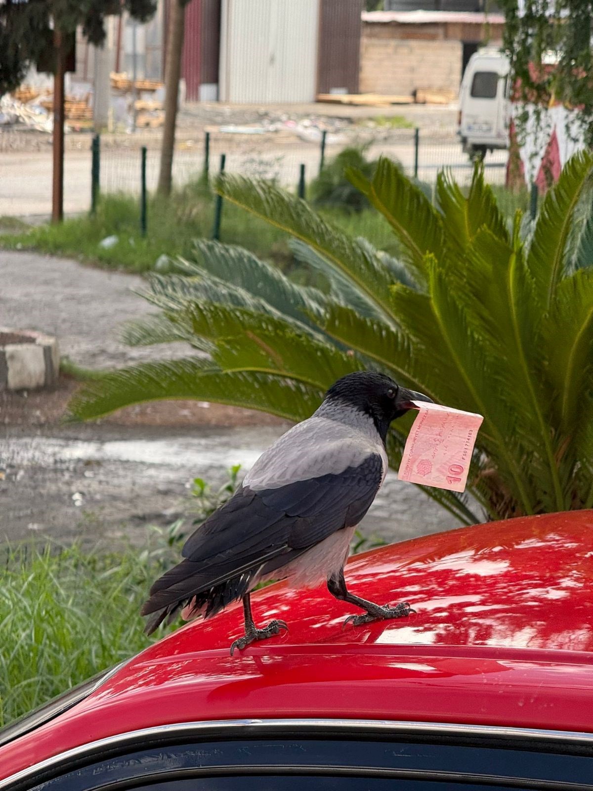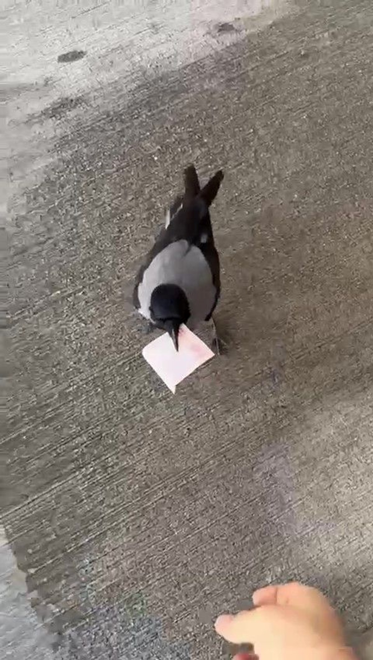 Poğaçayla besliyordu: Kargaya 10 TL'sini kaptırdı