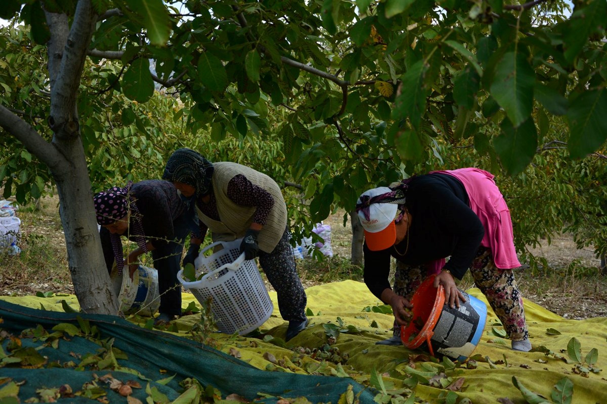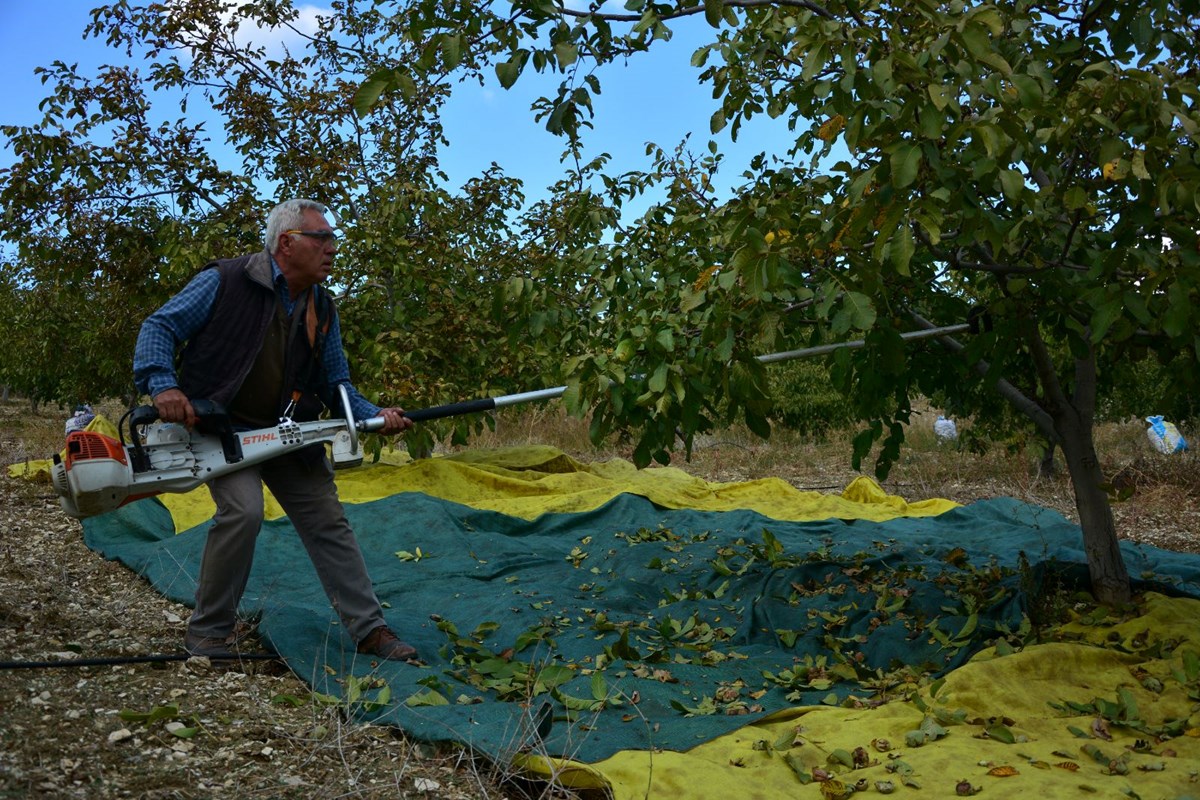 Manisa'nın Demirci ilçesinde yılda 13 bin 400 dekar alanda yaklaşık 500 ton üretimi gerçekleşen cevizde hasada başlandı.