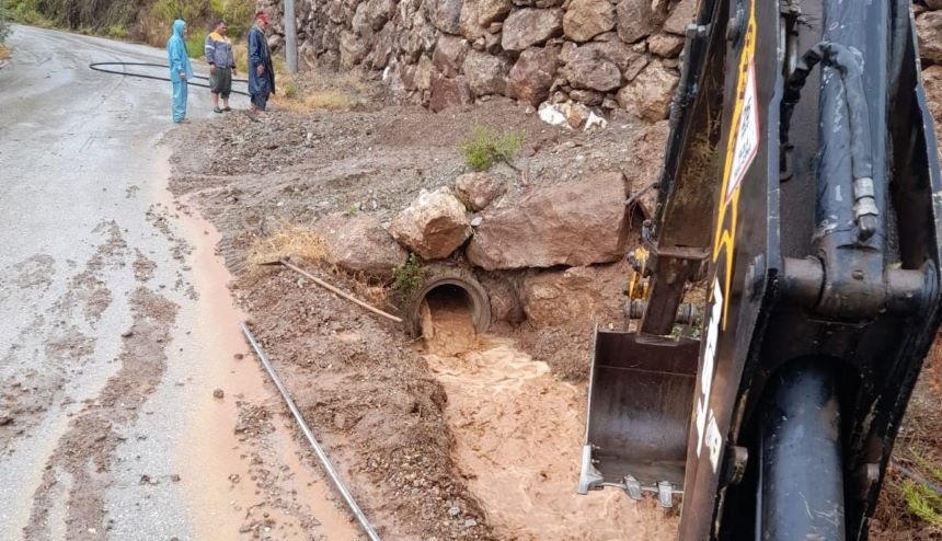 Antalya Büyükşehir Belediyesi ekipleri Alanya kırsalında yağışlar nedeniyle ulaşımda olumsuzluk yaşanmaması için yoğun mesai harcıyor. Ekipler, ulaşımda aksama yaşanmaması ve yolun güvenli hale gelmesi için iş makineleri ile çalışma yapıyor.