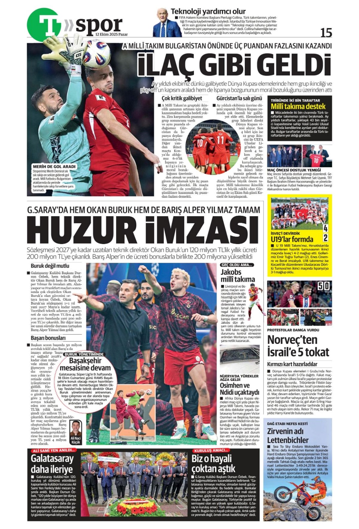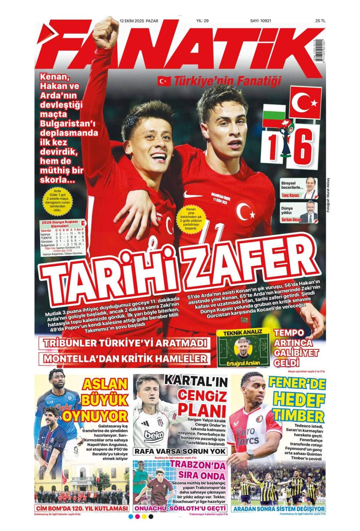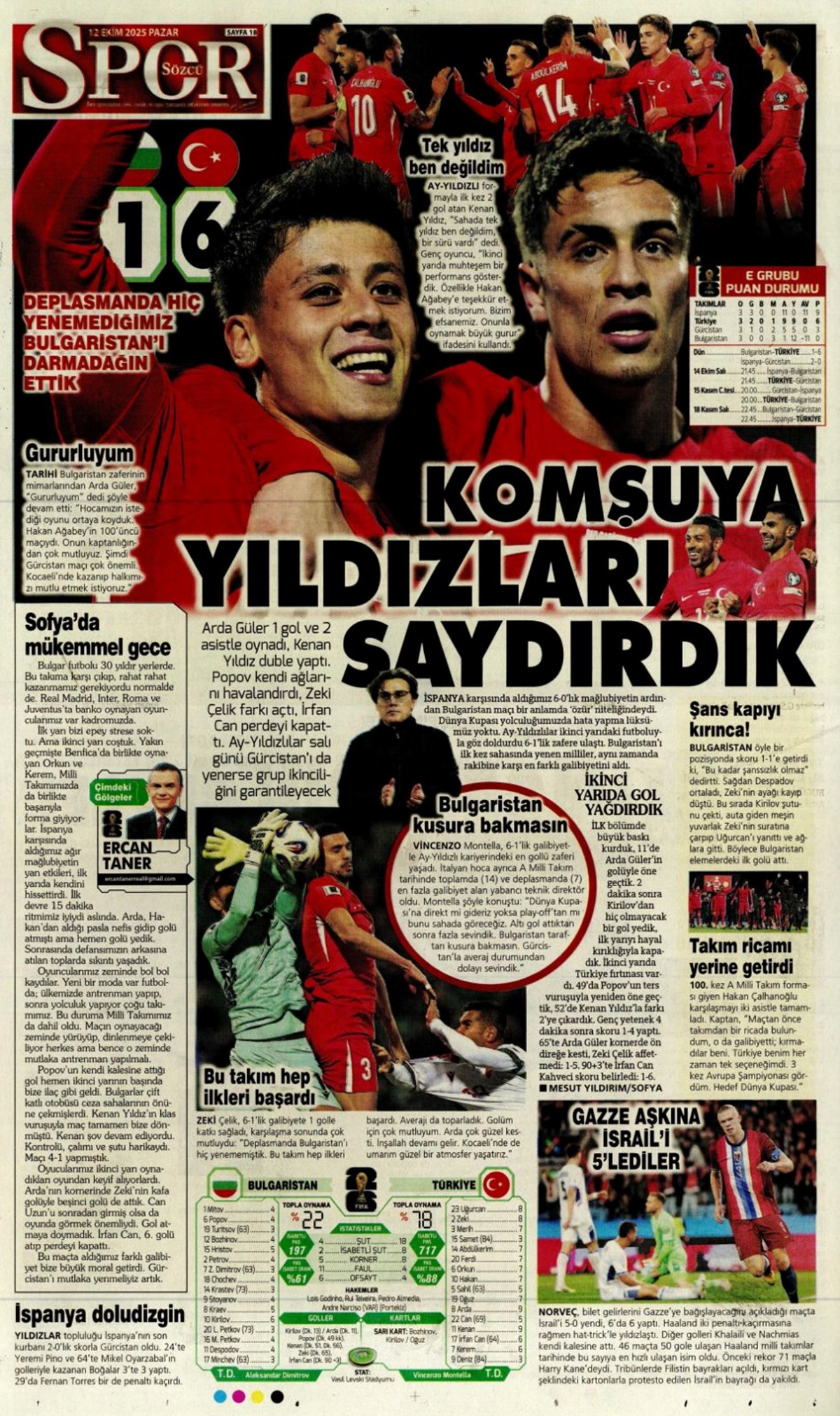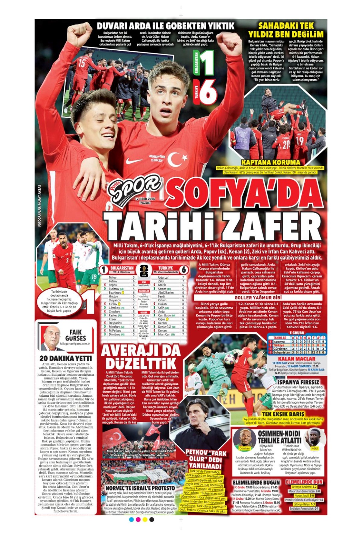 "Sofya'da tarihi zafer" (12 Ekim 2025 spor manşetleri)