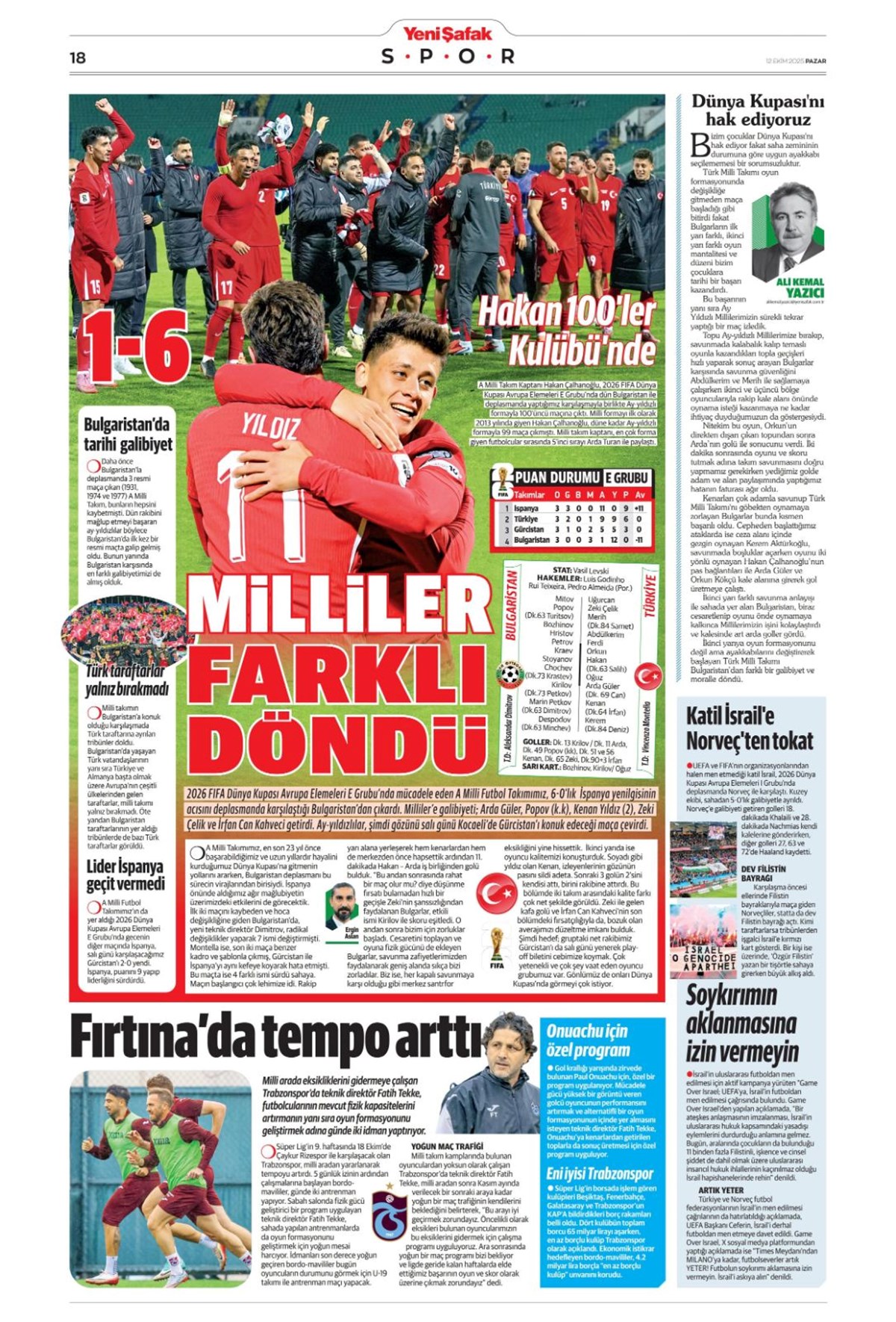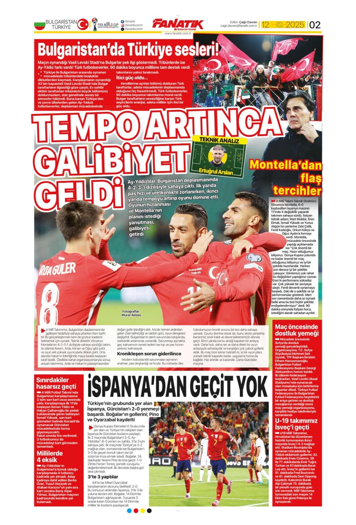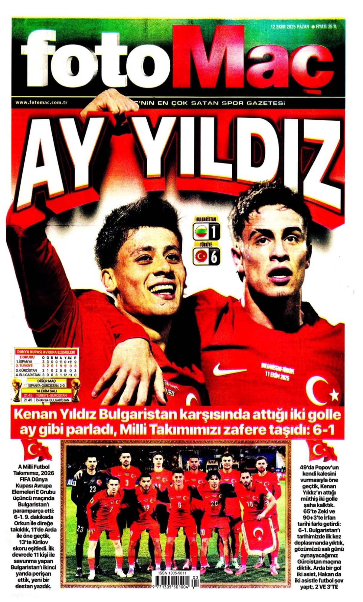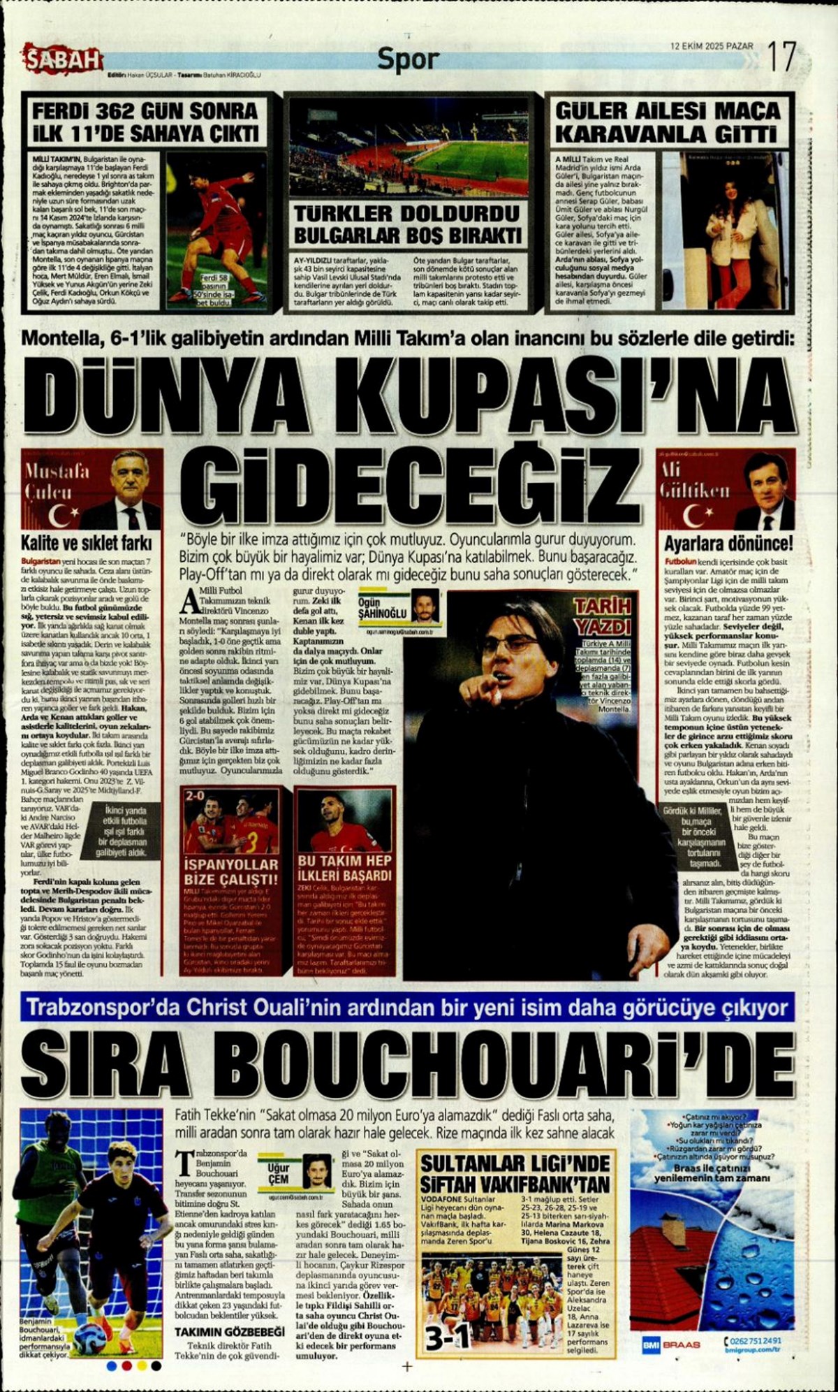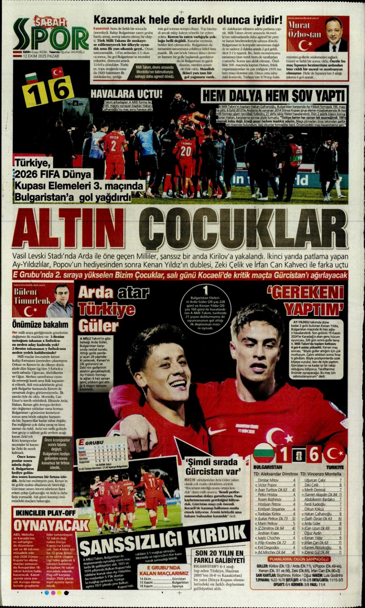 "Sofya'da tarihi zafer" (12 Ekim 2025 spor manşetleri)