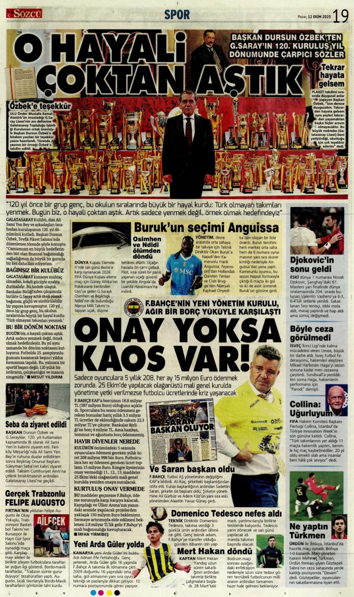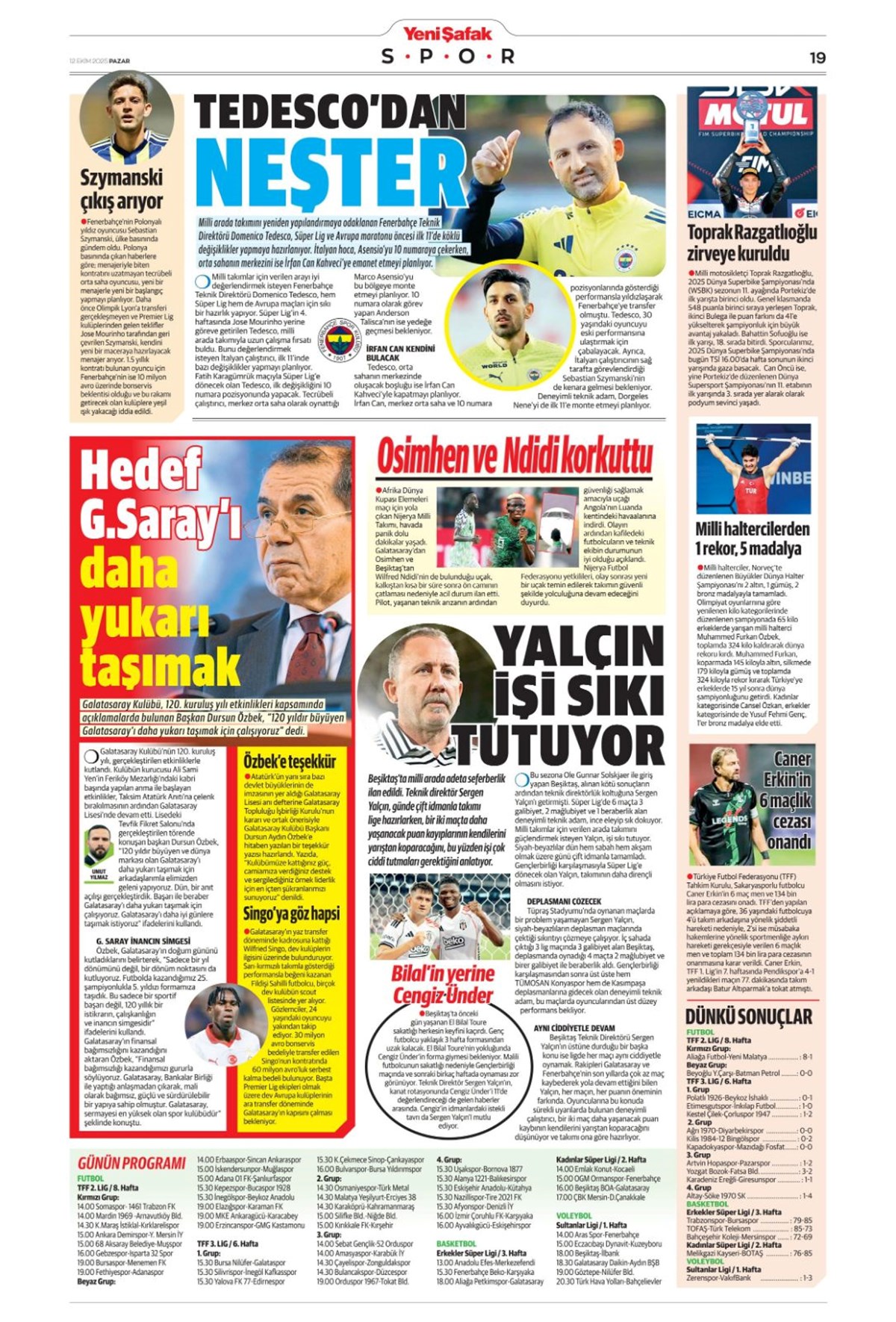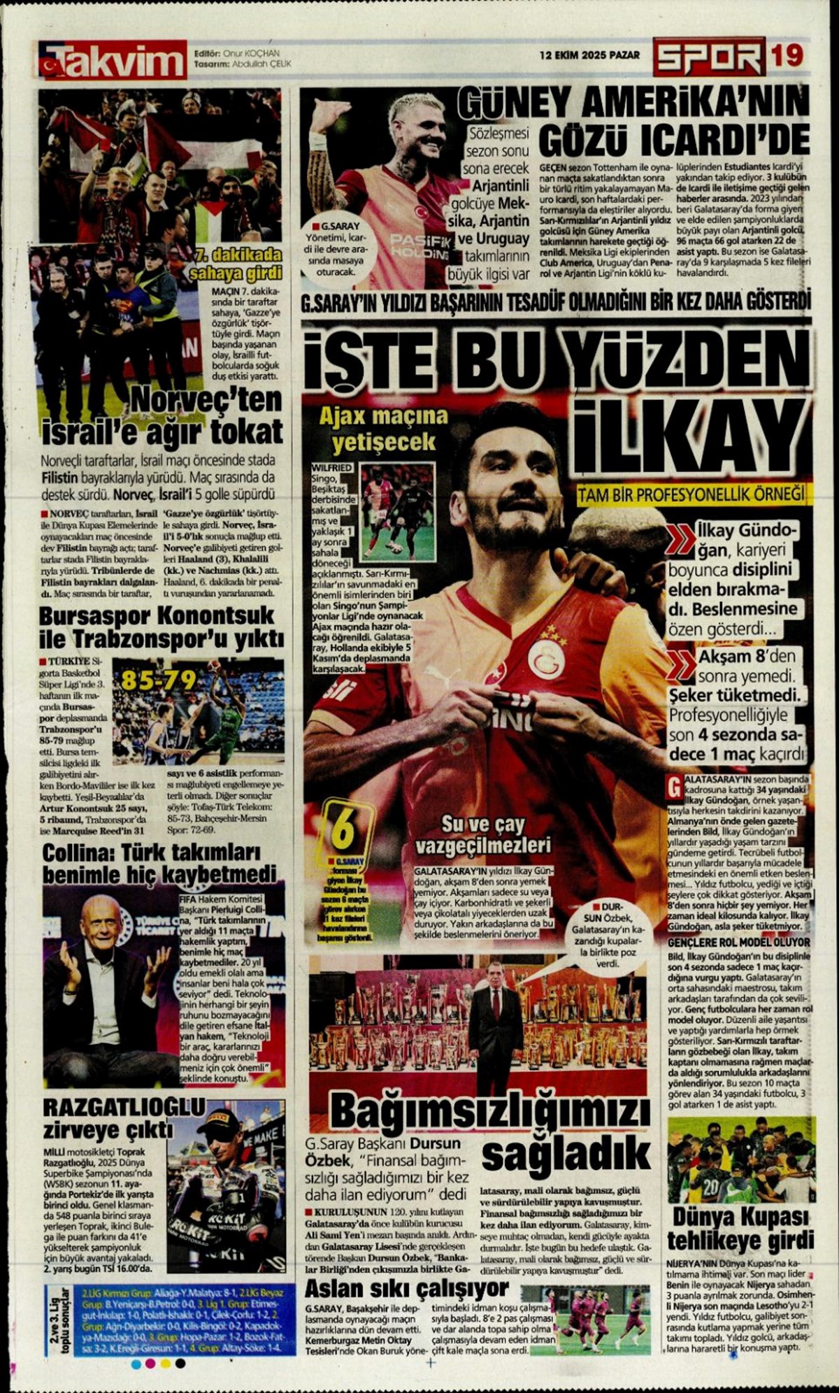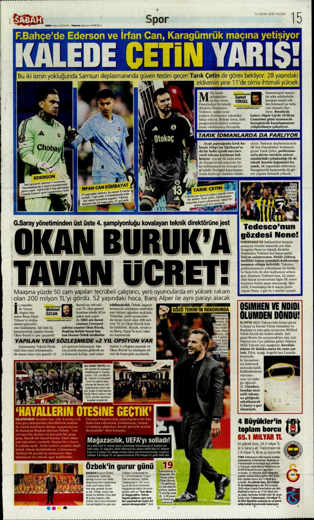 Günün spor manşetlerinde, spor gündeminden en yeni gelişmeler ve transfer haberleri yer aldı. 12 Ekim 2025 tarihli gazetelerin spor sayfalarında 2026 Dünya Kupası elemelerinde Bulgaristan karşısına çıkacak A Milli Takım, Beşiktaş, Fenerbahçe, Galatasaray ve Trabzonspor haberlerine, 1 dakikada göz atın.