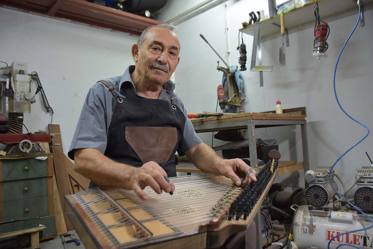 İzmir'de yaşayan Ömer Faruk Kurşunel, 20 yıldır kanun üretiyor. Meslek hayatına kanun ve ut çalarak başladığını belirten Kurşunel, kanununun sürekli arızalandığı için kendi enstrümanını yapmaya karar verip üretime başladığını söyledi.